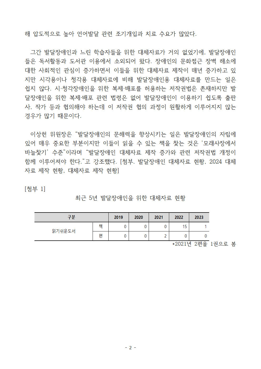 [국회의원 이상헌 보도자료] 모래사장에서 바늘 찾기! 발달장애인 위한 책 작년 단 1건 제작돼.. 최근 5년 새 17건에 불과!