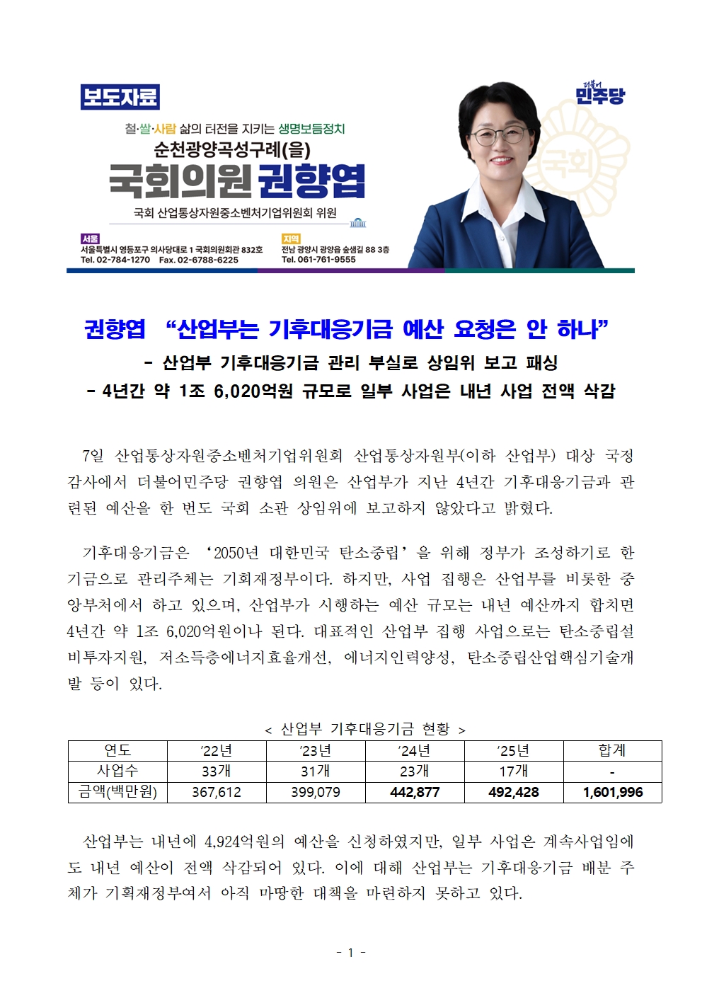 [국회의원 권향엽] 산업부, 기후대응기금 관리부실