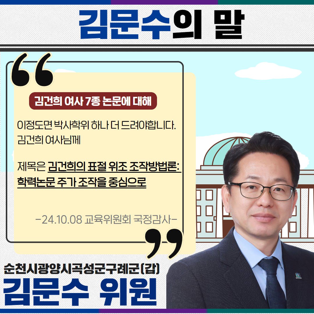 [국회의원 김문수 국정감사 카드뉴스] 김문수 의원 "이정도면 박사학위 하나 더 드려야 됩니다. 김건희 여사님께. 제목은 "김건희의 표절 위조 조작방법론: 학력논문 주가 조작을 중심