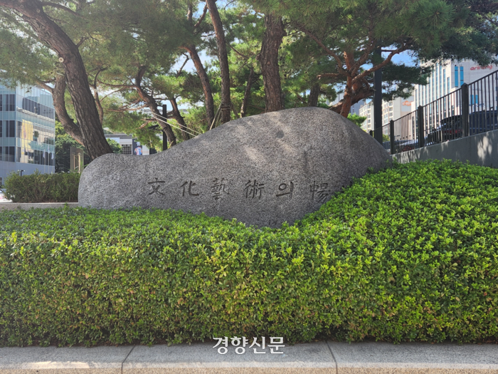 29일 이기헌 더불어민주당 의원실이 예술의전당에서 받은 자료와 경향신문 현장 취재를 종합하면 전씨 휘호석은 예술의전당 내 음악당과 지상 주차장 사이 화단에 존치돼 있다. 전씨 이름이 새겨진 아랫부분은 조경수로 가려져 보이지 않는다. 예술의전당 관계자는 “내부 의견을 수렴한 결과 휘호석을 보존하되 향후 필요하면 전씨에 대한 법원 판결문 내용 등을 부근에 설치하자는 것으로 결론이 났다”고 밝혔다.