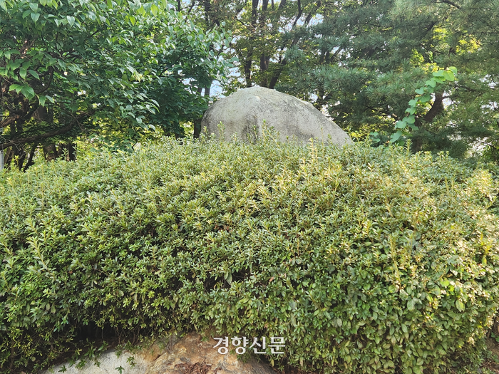 서울 서초구 예술의전당에 전직 대통령 전두환씨의 휘호를 새긴 바위가 전씨 이름만 가려진 채 놓여있는 것으로 확인됐다.