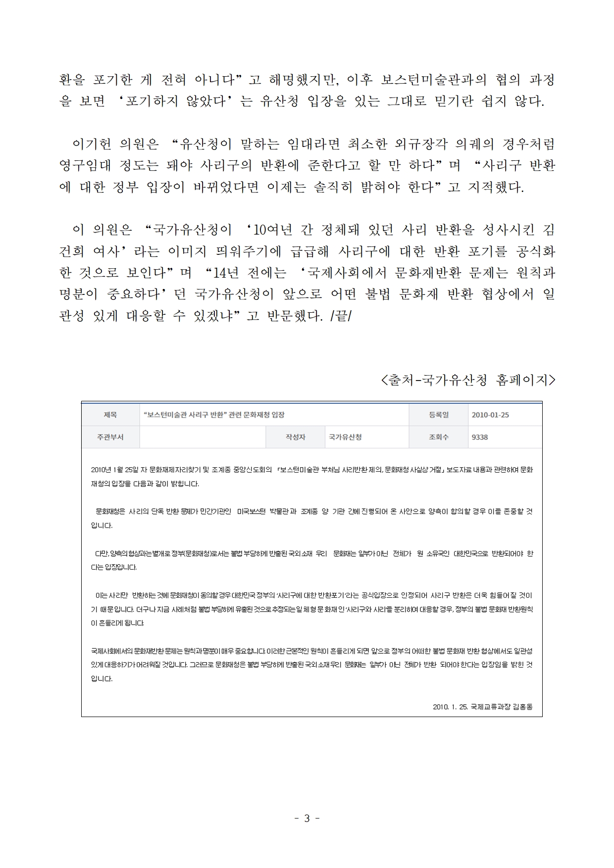 [이기헌 의원(고양시 병) 언론보도]<연합뉴스>'압류 면제' '대여 끝나면 반환' 조건 걸린 보스턴미술관 사리구