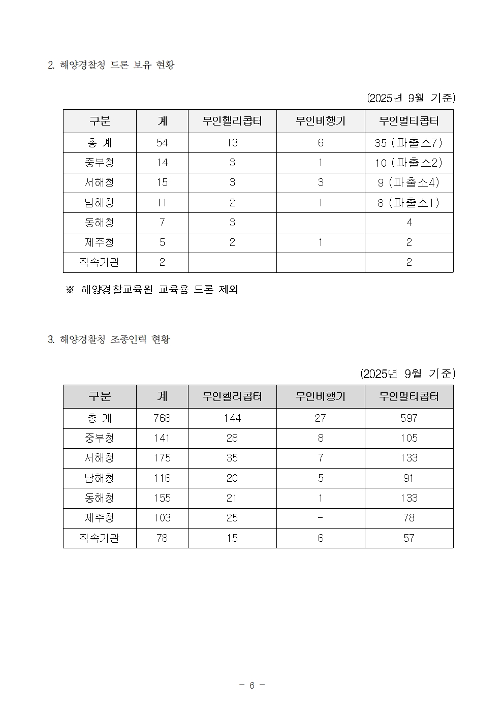 [윤준병 의원 국정감사 보도자료] 해경 드론조종인력 600명 달하지만, 해경파출소 무인드론 보급은 7.2% 불과