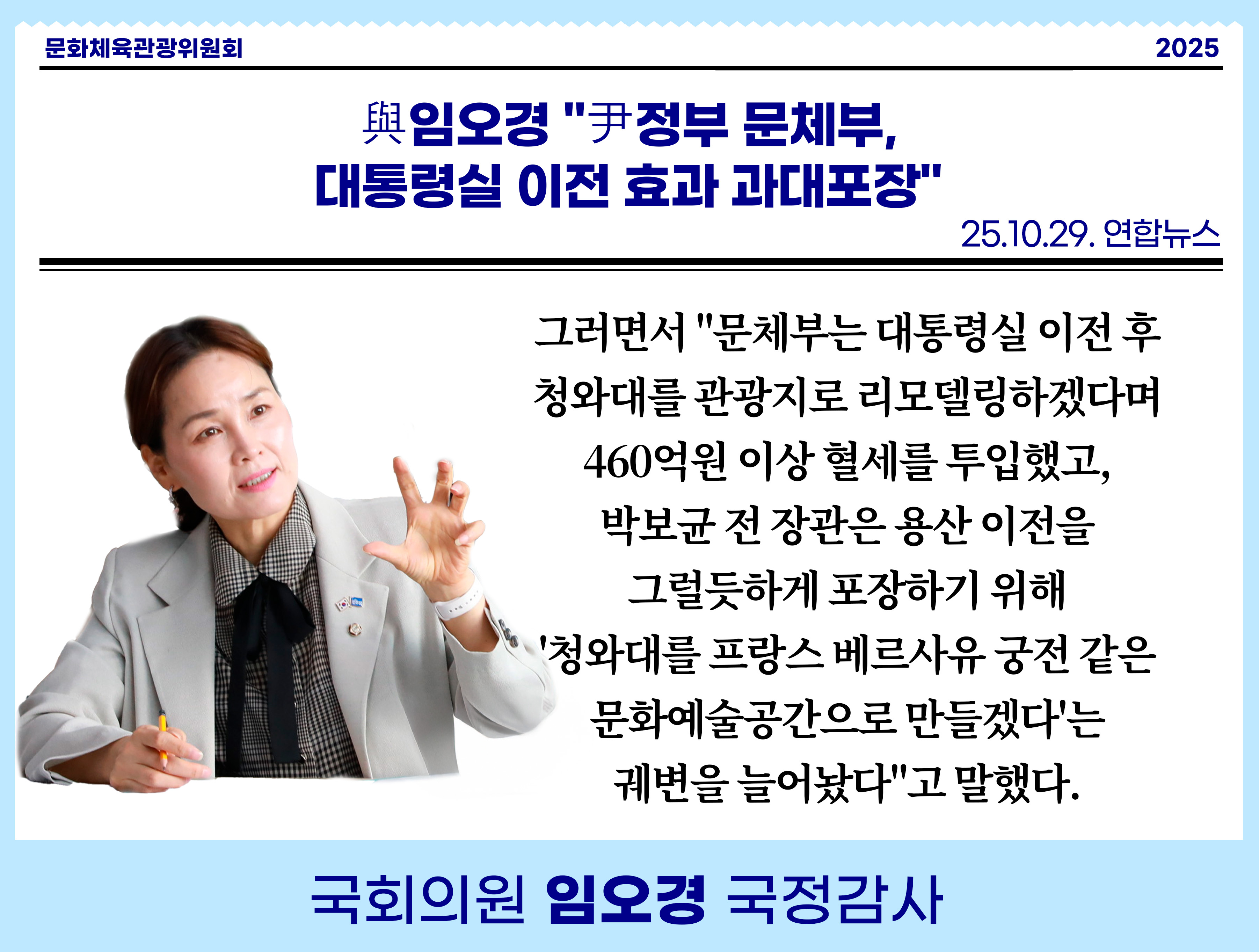 [임오경 카드뉴스]연합뉴스 / 與임오경 "尹정부 문체부, 대통령실 이전 효과 과대포장"