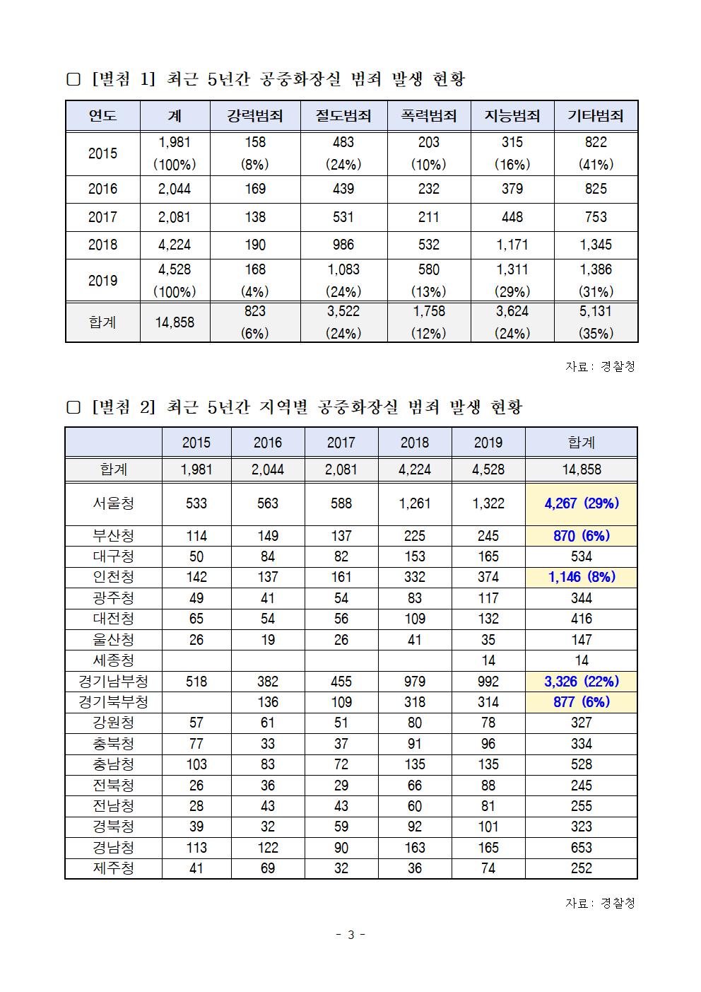 [국회의원 박재호] 화장실 범죄 급증해도 공중화장실 83% 비상벨 장치 없어