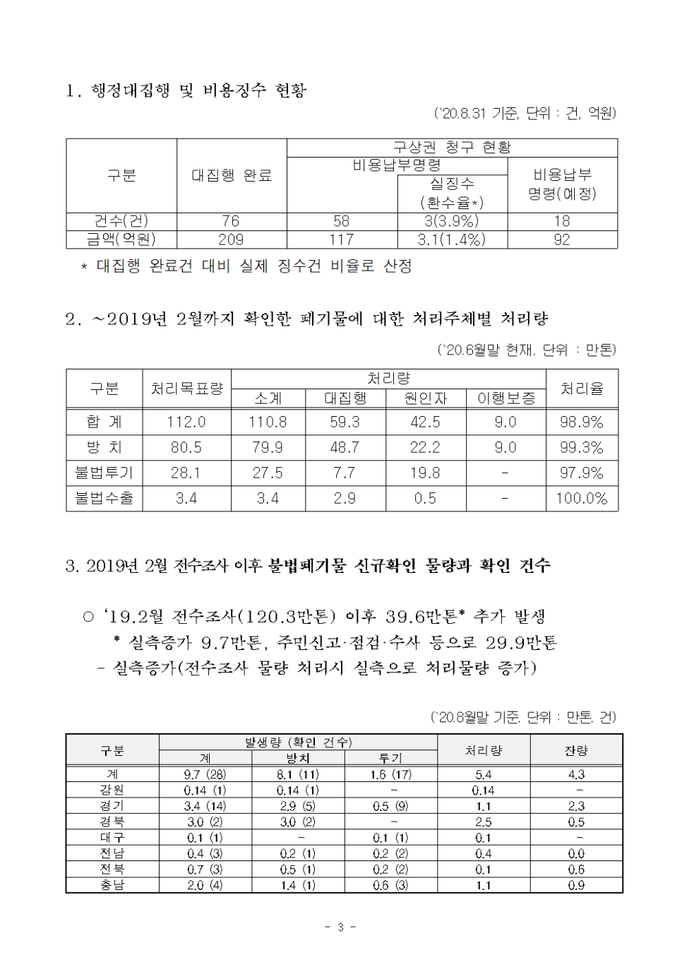 201002+윤준병+의원+국정감사+보도자료+윤준병+의원,+불법쓰레기+대집행+후+구상권+청구액+209억원+중+환수는+단+3억+불과.hwp
