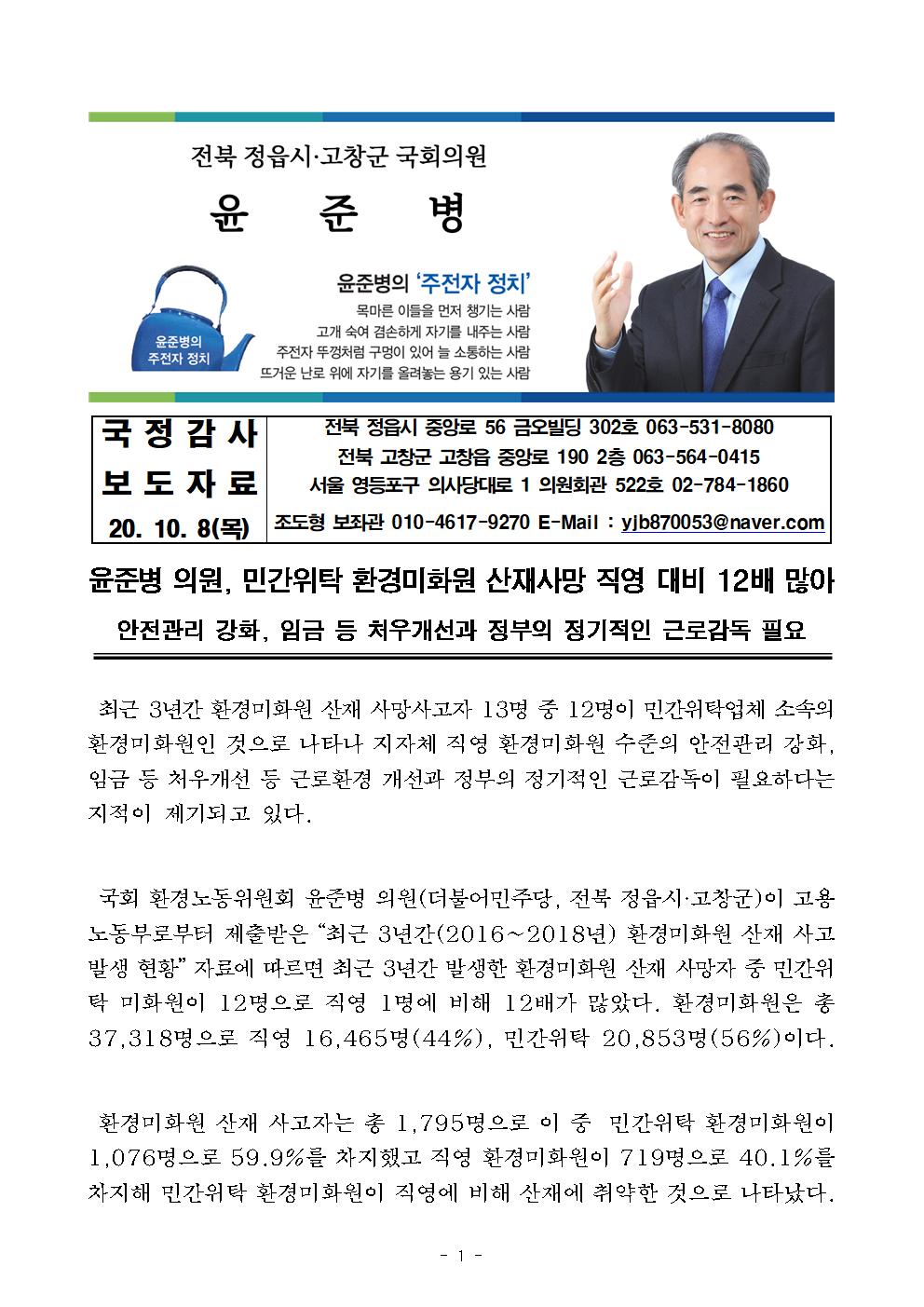 201008_윤준병_의원_국정감사_보도자료_윤준병_의원,_민간위탁_환경미화원_지자체_직영에_비해_사고사망_12배.hwp