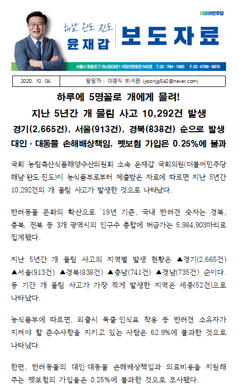 윤재갑_의원실_5년간_개물림_사고_10292건_발생.hwp