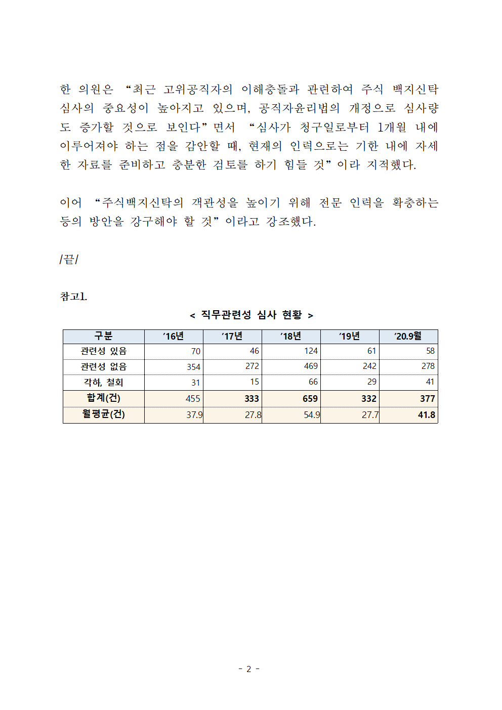 한병도_의원_2020_10_12_행안위_국정감사_보도자료(25)_주식백지신탁_심사_증가_예상되지만_사무담당_직원은_4명뿐.hwp