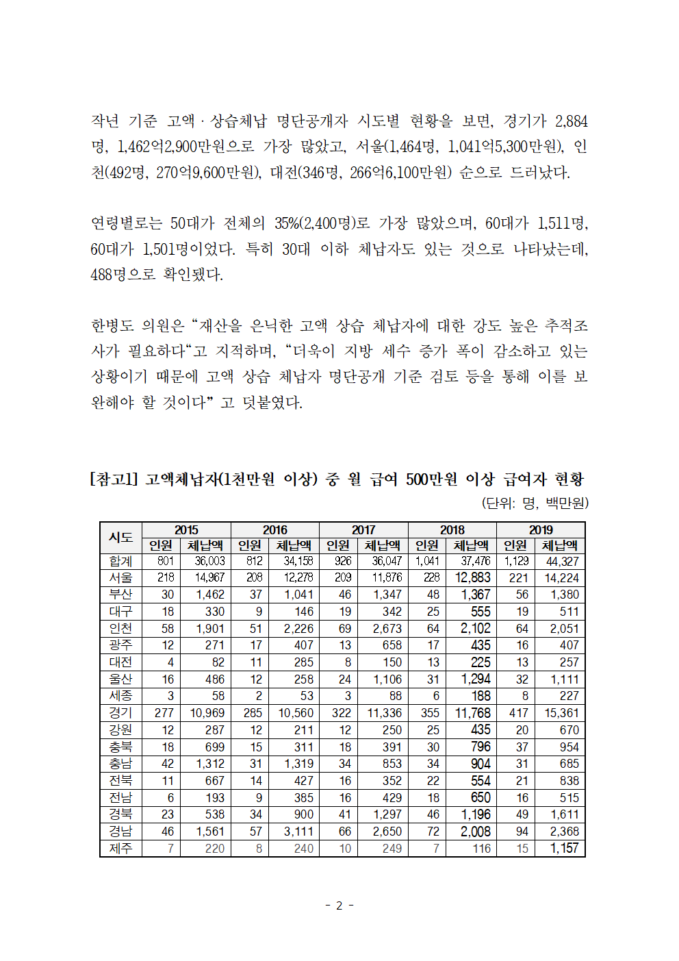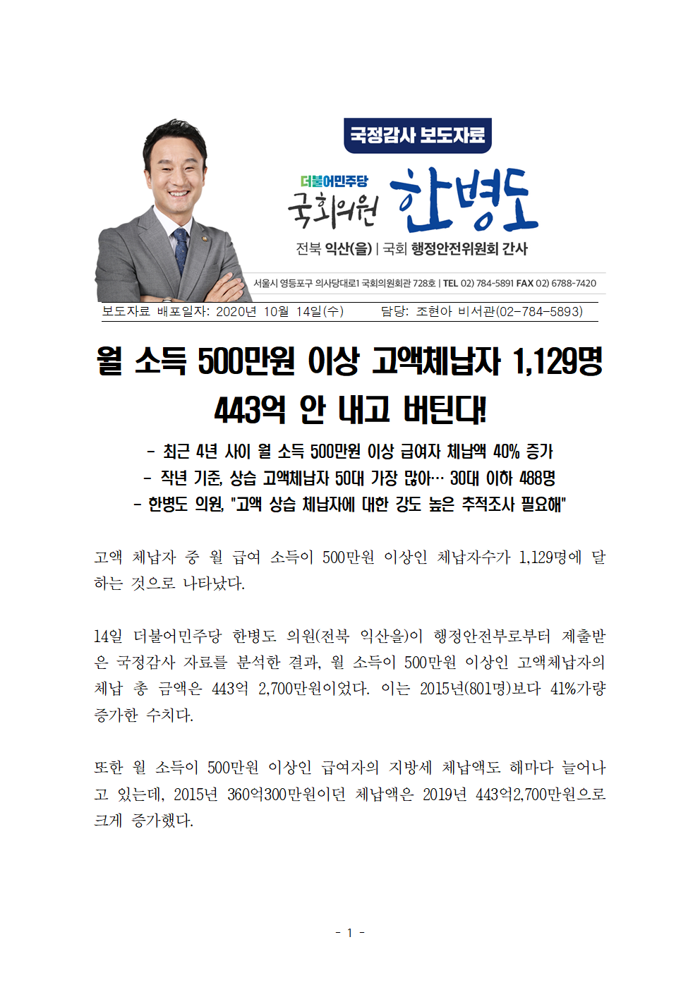 한병도_의원2020_10_14_행안위_국정감사_보도자료(29)_월_소득_500만원_이상_고액체납자_1,129명.hwp