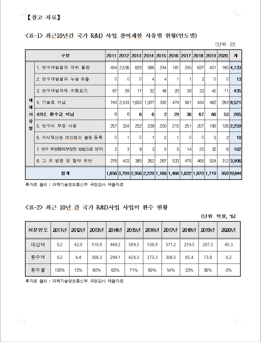 보도자료_1호_‘불량_집행된_국가_RD사업’,_혈세_환수_못하는_과기부_9월_20일.hwp