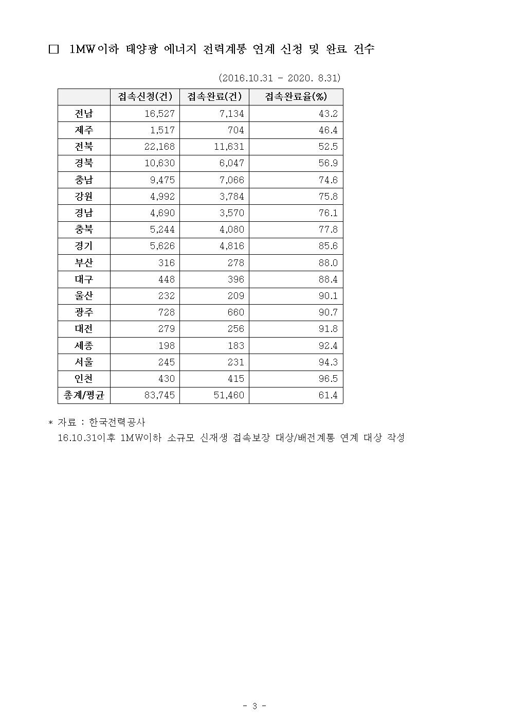 [이성만 의원실 보도자료] 201013_이성만 의원 "태양광 송배전 계통연계 지역 격차 심각"