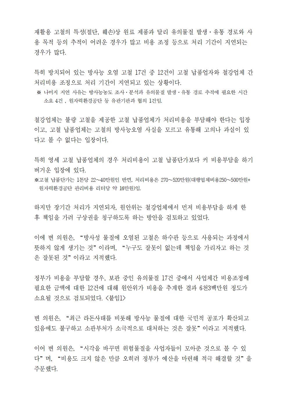 [변재일의원]방사능오염 고철 처리, 누구도 잘못없다면 정부가 해결해야