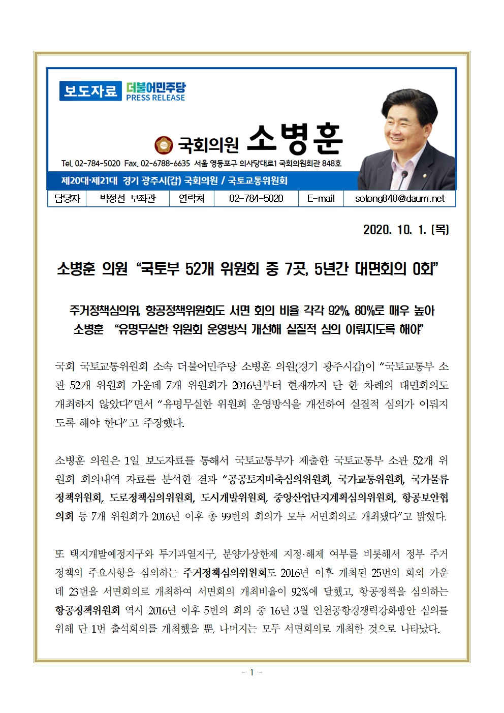 201001_보도자료_국토부_52개_위원회_중_7곳,_5년간_대면회의_0회(소병훈의원).hwp