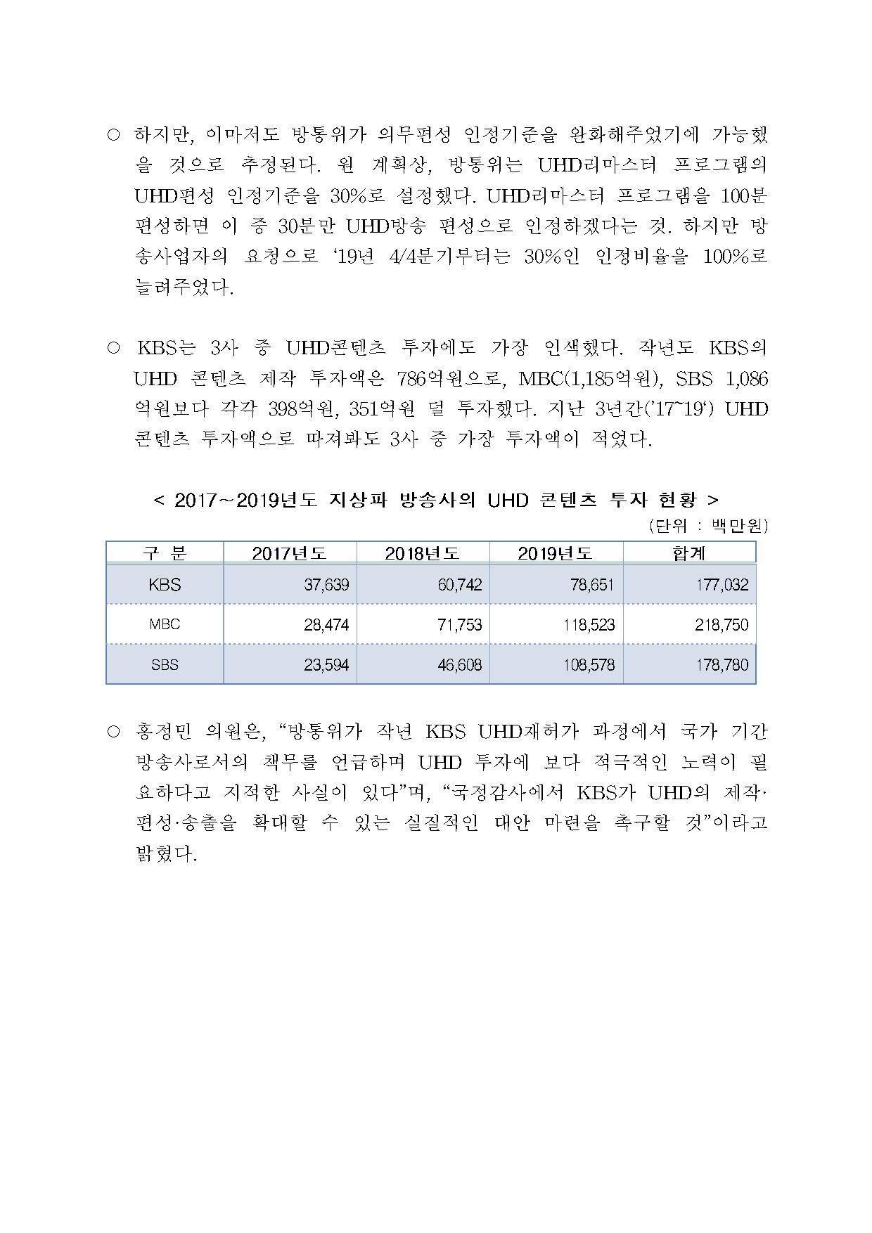 201015_홍정민의원_국정감사_보도자료16_UHD리마스터_프로그램으로_UHD_의무편성비율채워.hwp