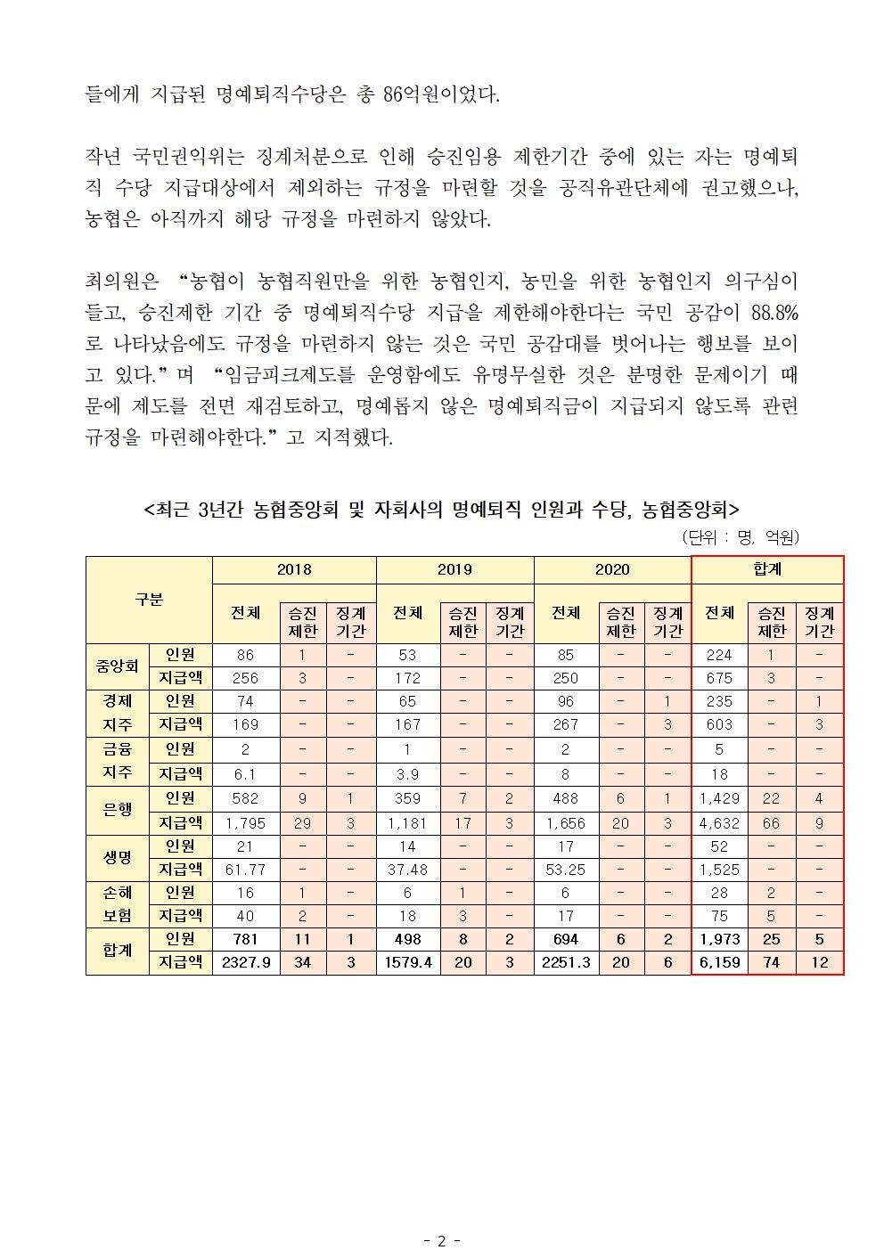 [국회의원 최인호] 신의 직장 농협, 과도한 명예퇴직 제도 운영