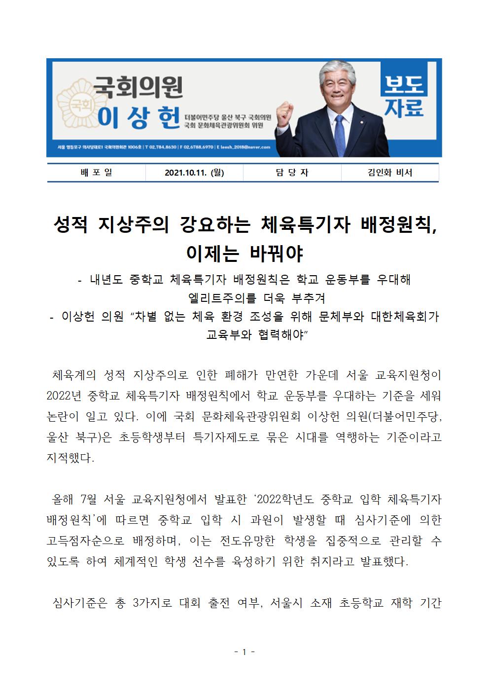 이상헌의원_보도자료_성적_지상주의_강요하는_체육특기자_배정원칙,_이제는_바꿔야.hwp