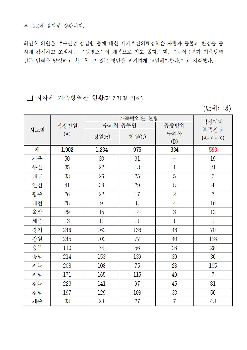 최인호의원_보도자료2_가축방역관_인력,_적정인원_대비_593명31%_부족.hwp