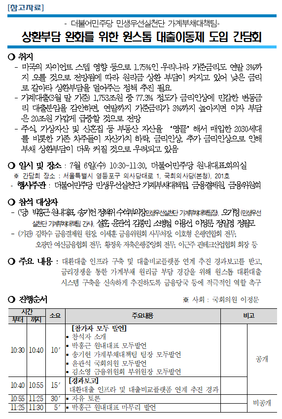 [보도자료] 더불어민주당 민생우선실천단, 상환부담 완화를 위한 원스톱 대출이동제 도입 간담회 개최