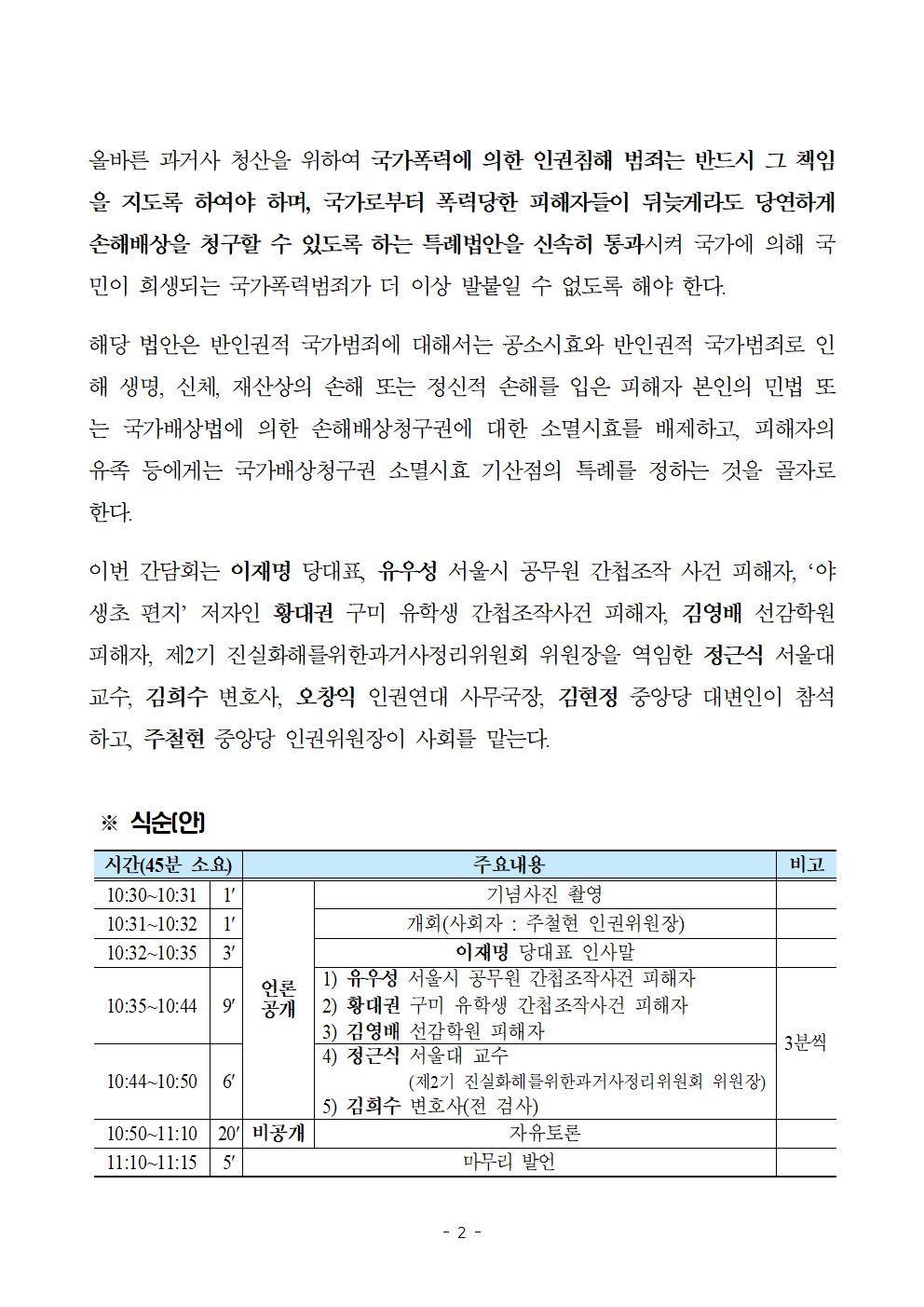 [보도자료] 더불어민주당 인권위원회, ‘국가폭력 인권파괴 중단, 국가범죄 소멸시효 배제 촉구’ 국가폭력피해자 간담회 개최