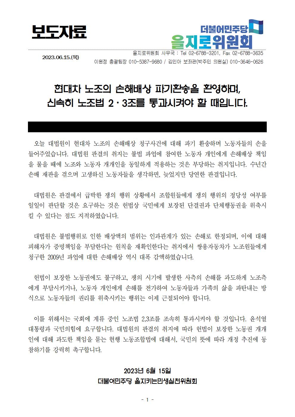 230615_(보도자료)_현대차_노조의_손해배상_파기환송_환영_을지로위원회_보도자료_fn.hwp