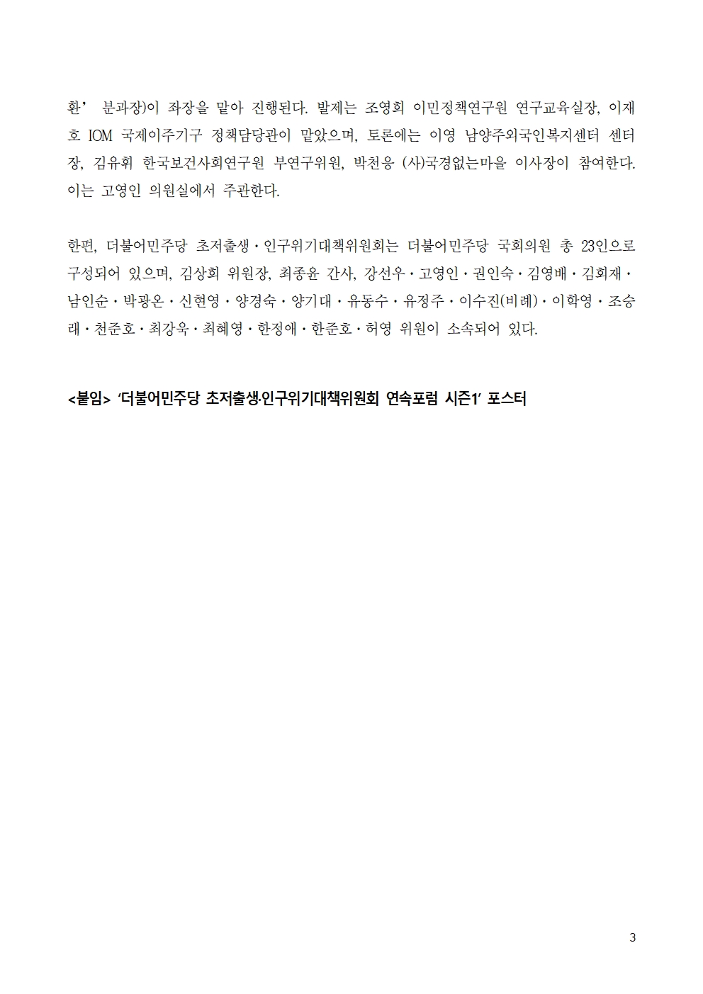 20230619_민주당_인구위기대책위_보도자료육아기_획기적_지원-인구감소_대응_연속포럼_시즌1_개최.hwp