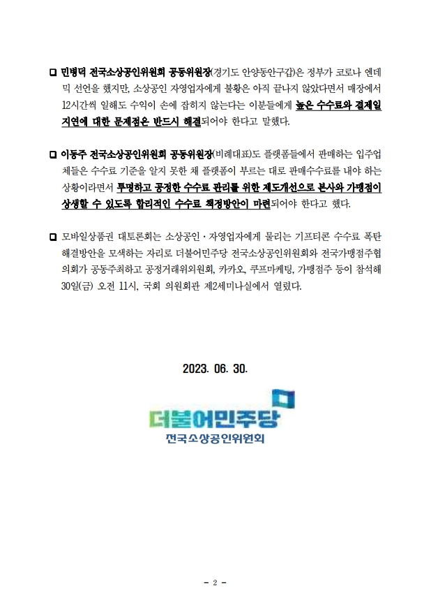 [보도자료] 더불어민주당 전국소상공인위원회, 소상공인, 자영업자 모바일쿠폰 수수료 과다 지적