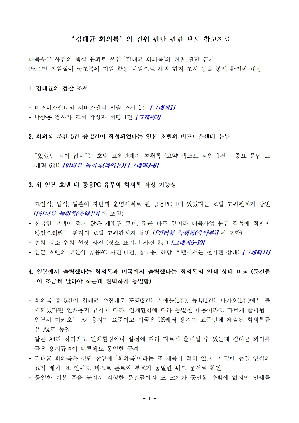 국회 조작기소 의혹사건 진상규명 국정조사 특별위원회, '김태균 회의록'의 진위여부 보도 참고 자료