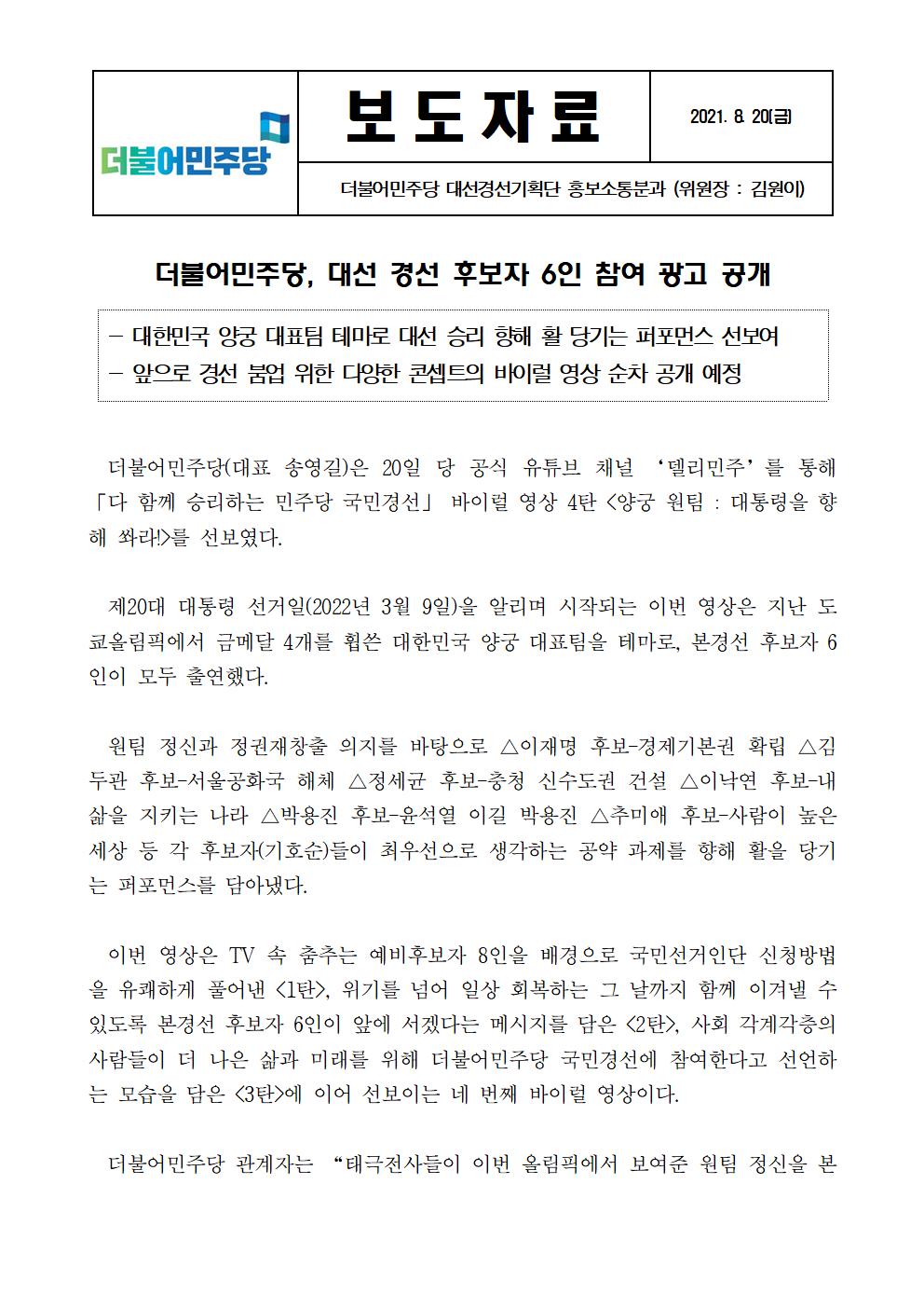 210820_(보도자료)_더불어민주당,_대선_경선_후보자_6인_참여_광고_공개.hwp