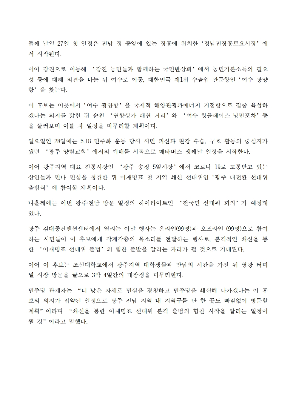 [보도자료] 더불어민주당 선대위 비서실, 이재명 후보, 세번째 매타버스 광주, 전남 방문 일정 돌입