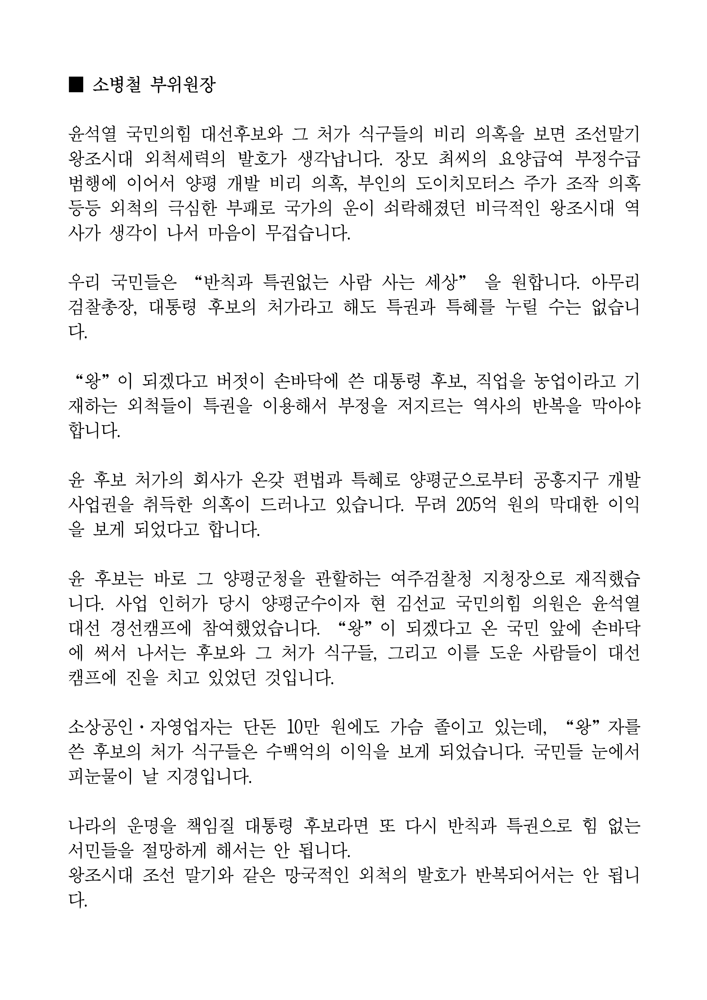 [보도자료] 더불어민주당 윤석열 은폐수사 및 50억클럽 진상규명특별위원회 모두발언