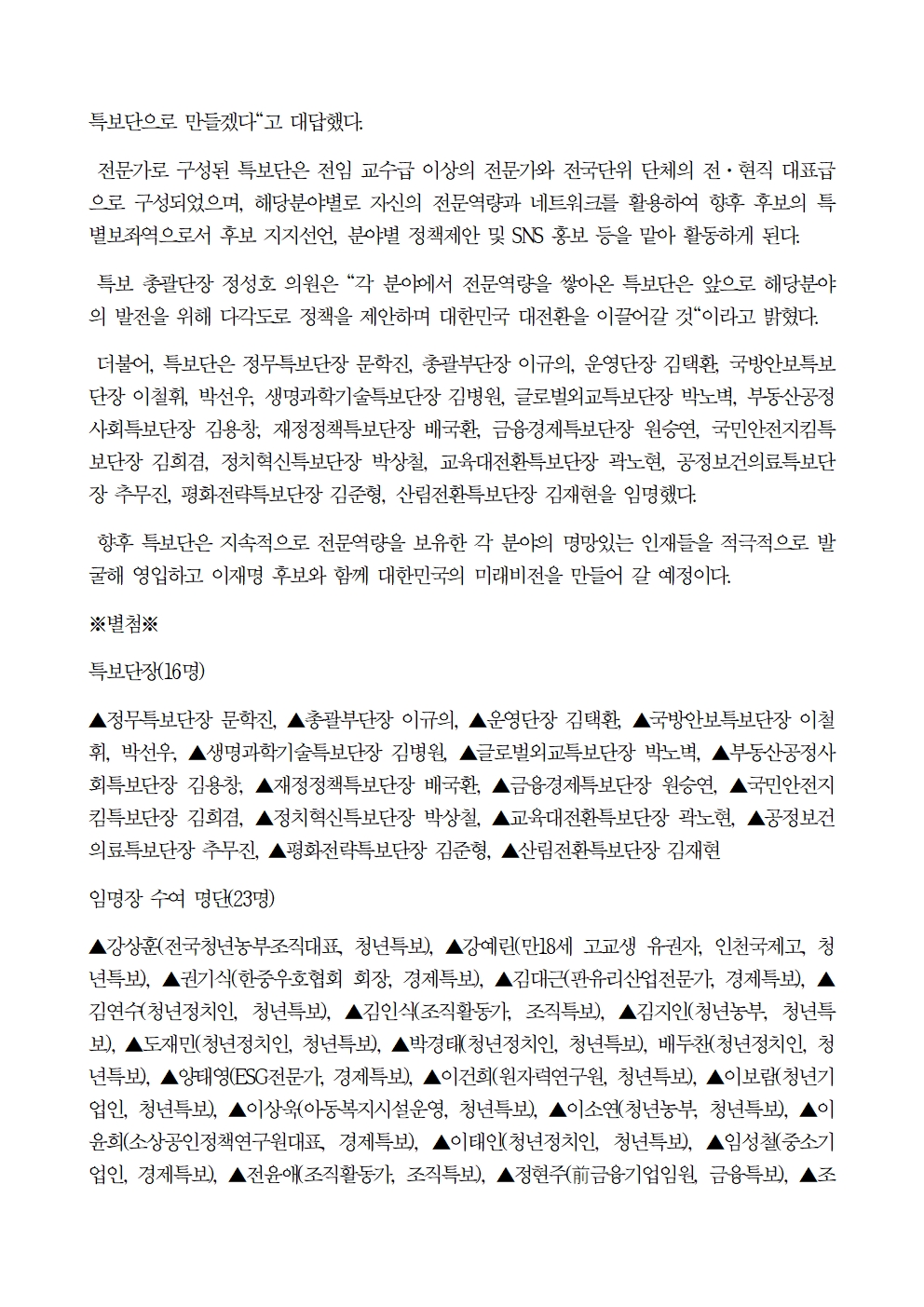 [보도자료] 이재명은 합니다 '제20대 대선후보특보단' 출범