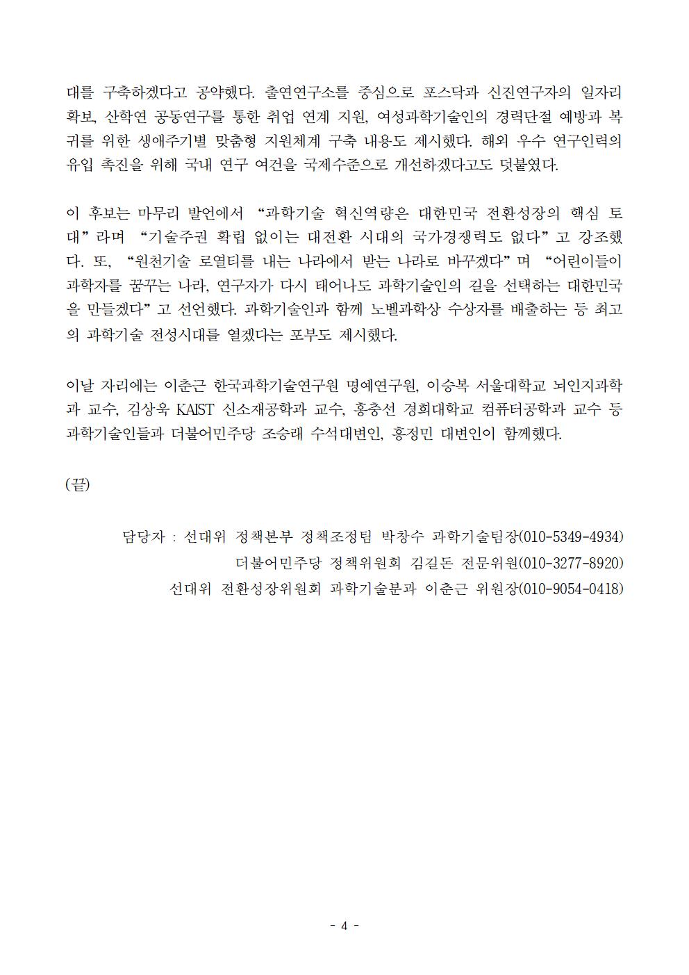 [보도자료] 더불어민주당 선대위 정책본부_이재명 후보 과학기술 7대 공약 발표_기술주권 확립과 과학기술 강대국 실현 비전 제시