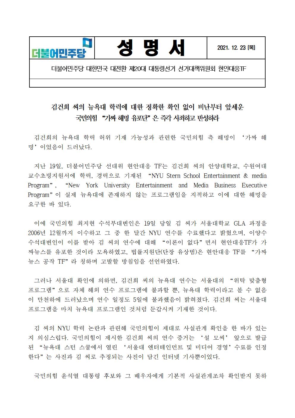 211223_현안대응_TF_성명서_김건희_뉴욕대_학력_해명_관련.pdf