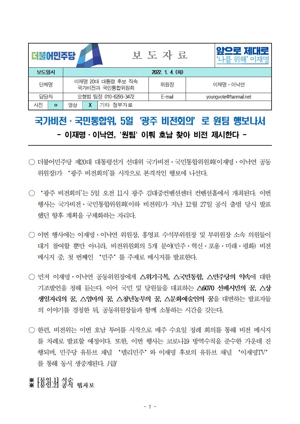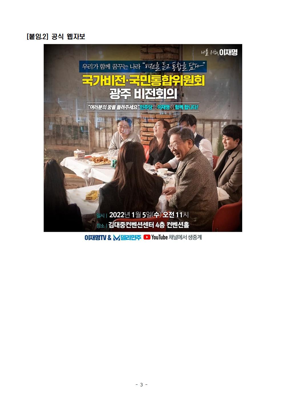 [보도자료] 더불어민주당 대통령 후보직속 국가비전과 국민통합위원회 광주 비전회의
