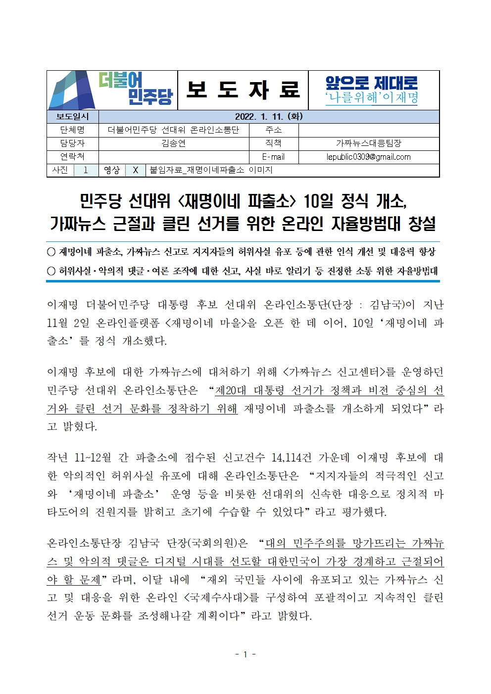220111_보도자료_선대위_온라인소통단_가짜뉴스_대응_재명이네파출소_개소.pdf
