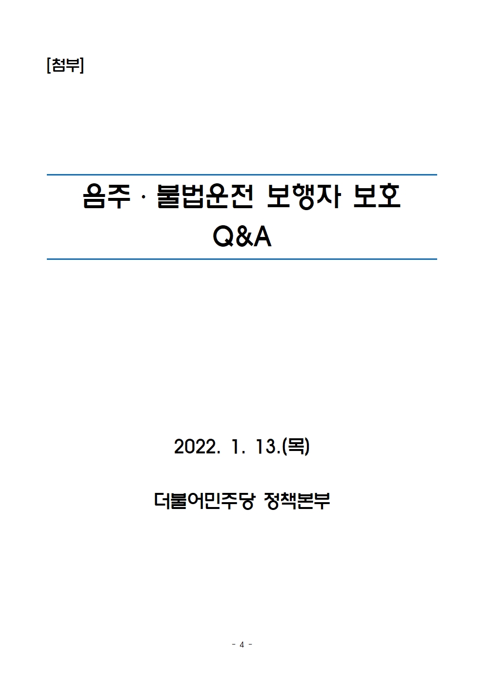 [보도자료] 더불어민주당 선대위 정책본부, 보행자 안심 교통환경 공약 발표