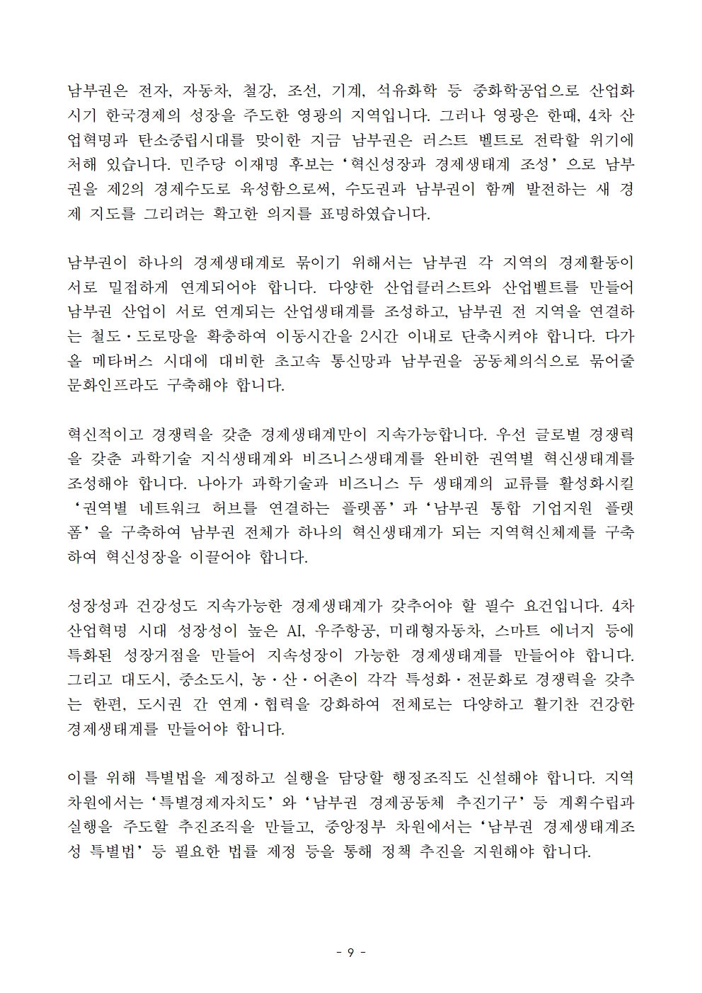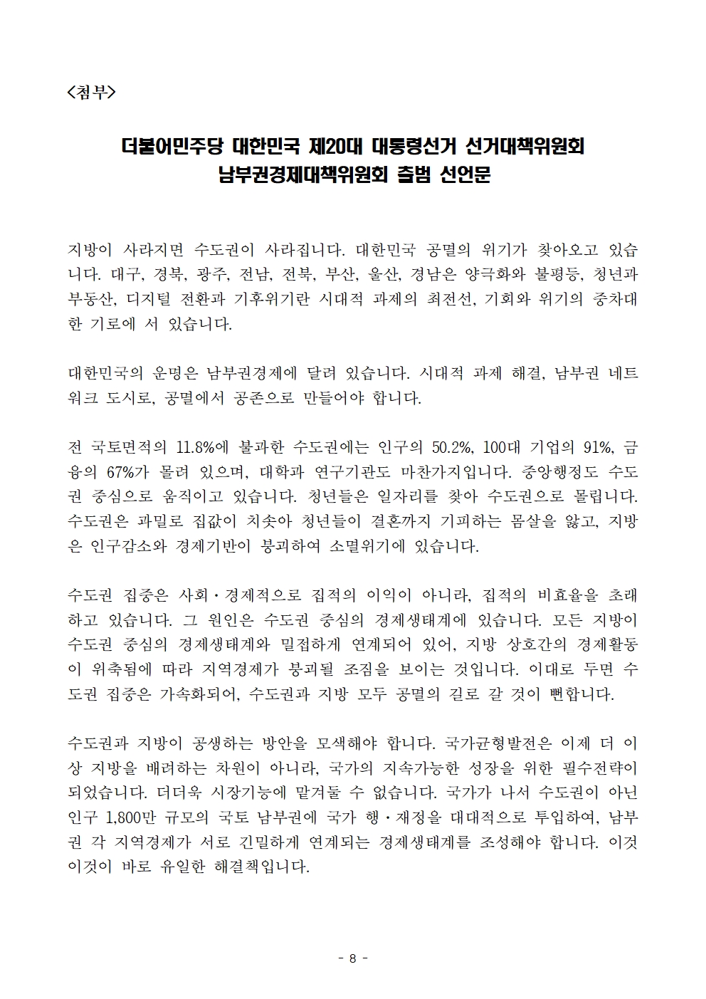 [보도자료] 더불어민주당 선대위 남부권경제대책위원회 출범식 개최