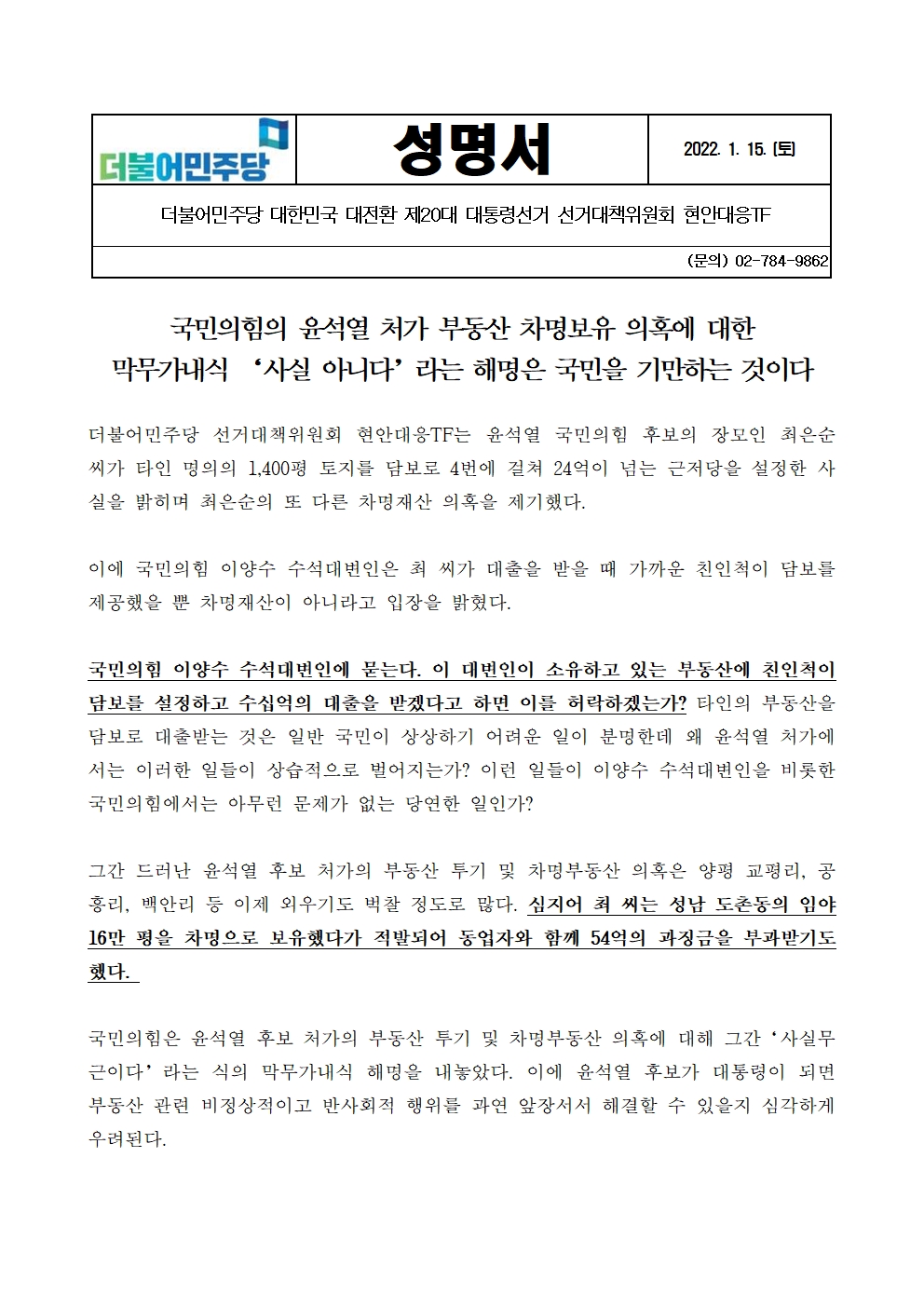 더불어민주당_현안대응TF,_국민의힘_윤석열_처가_부동산_차명보유_의혹_관련_성명서.pdf