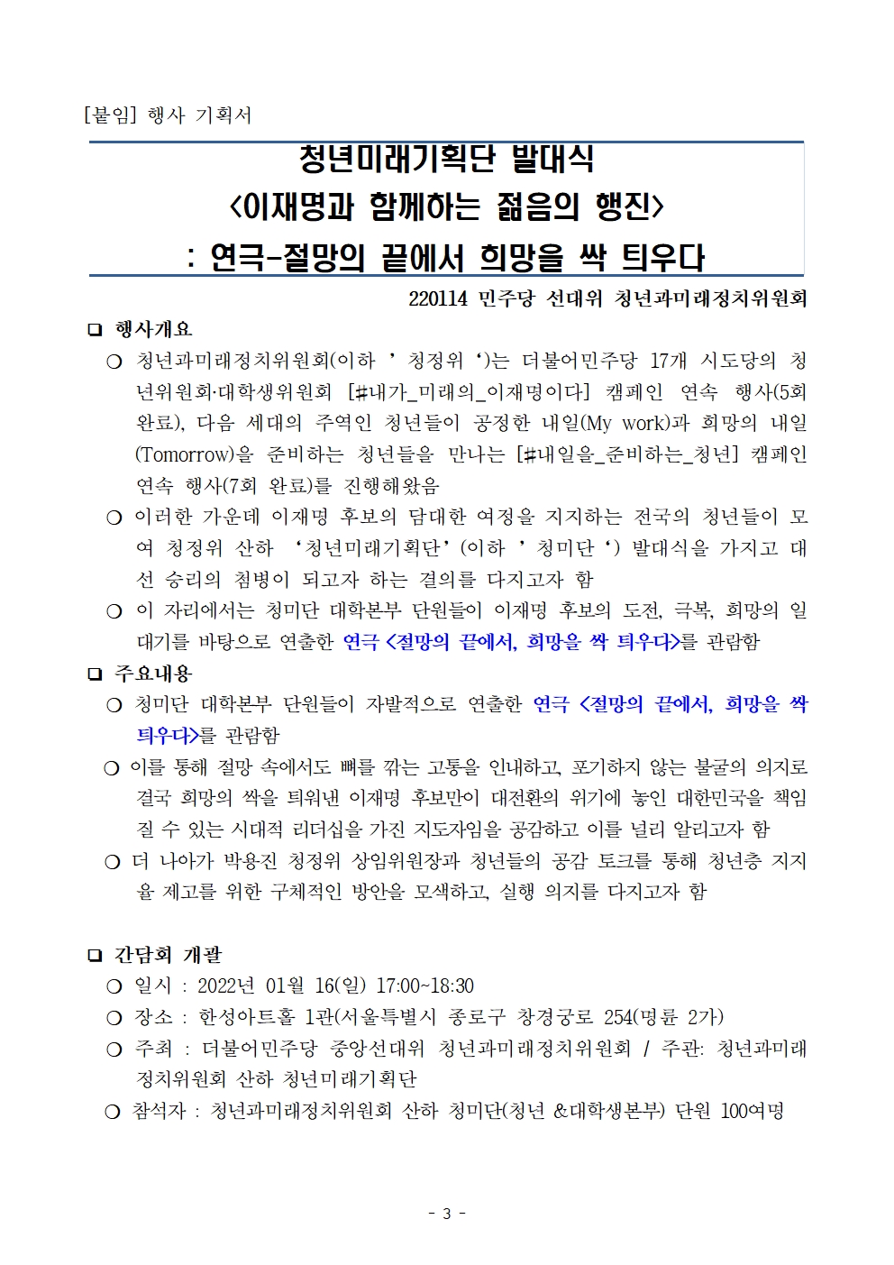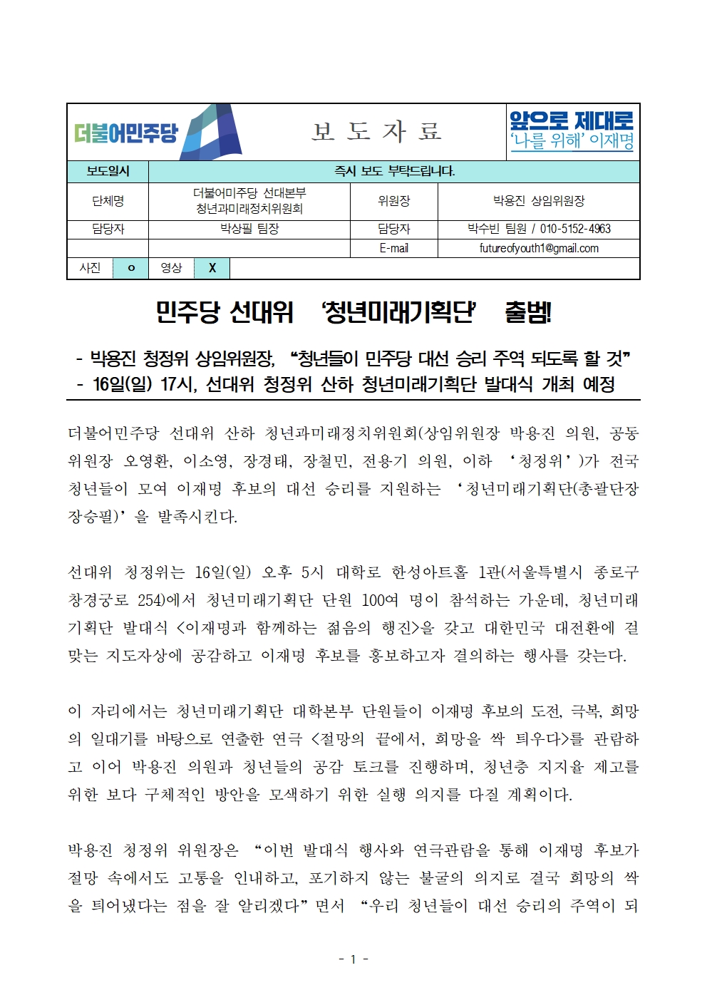 [보도자료] 더불어민주당 선대위 청년과미래정치위원회, 청년미래기획단 출범