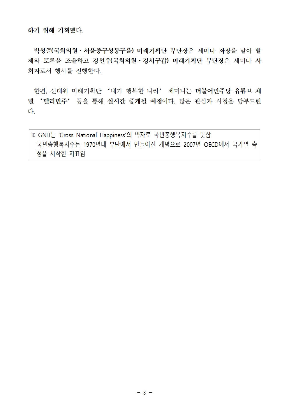 [보도자료] 더불어민주당 선대위 미래기획단, '내가 행복한 나라' 세미나 개최