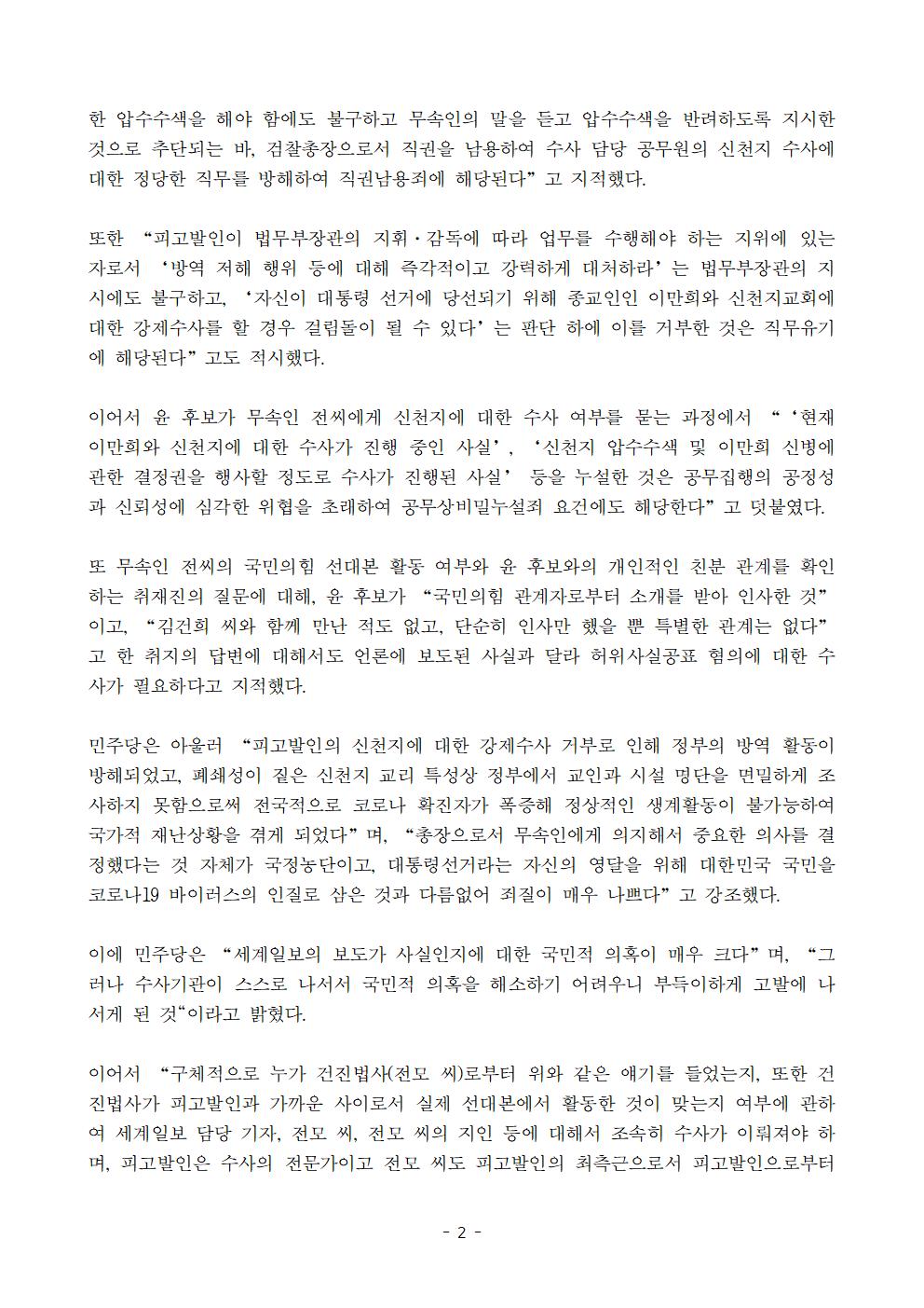 [보도자료] 더불어민주당 선거대책위원회 국민검증법률지원단 윤석열 후보 직권남용협의 검찰 고발