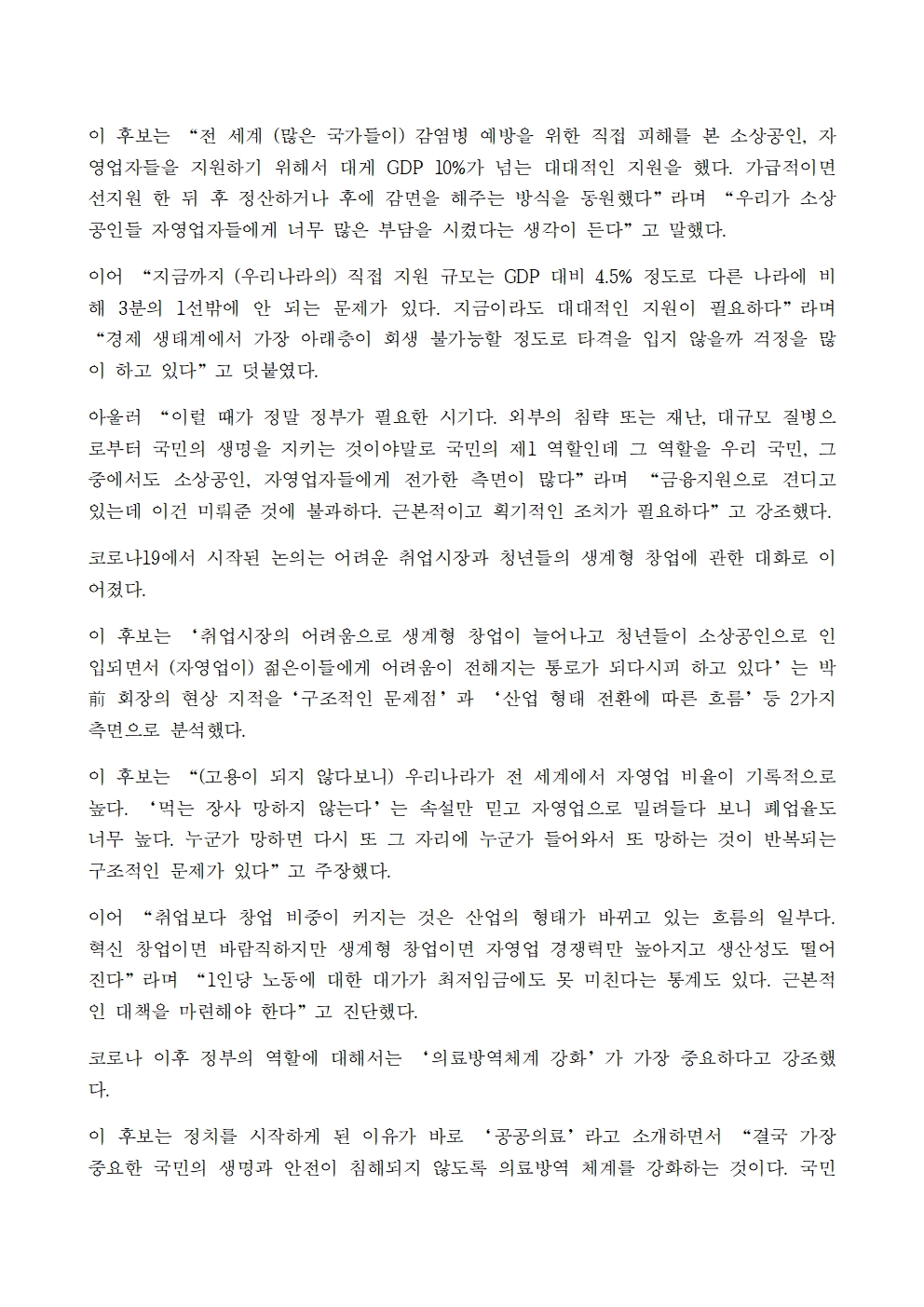 [보도자료] 더불어민주당 선대위 공보단, '만문명답(박용만이 묻고 이재명이 답하다)' 유튜브 '이재명TV' 전격 공개