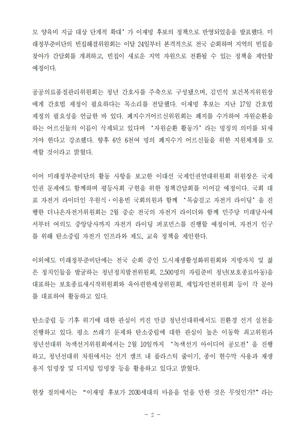 [보도자료] 더불어민주당 다이너마이트 청년선대위 중간보고회 개최
