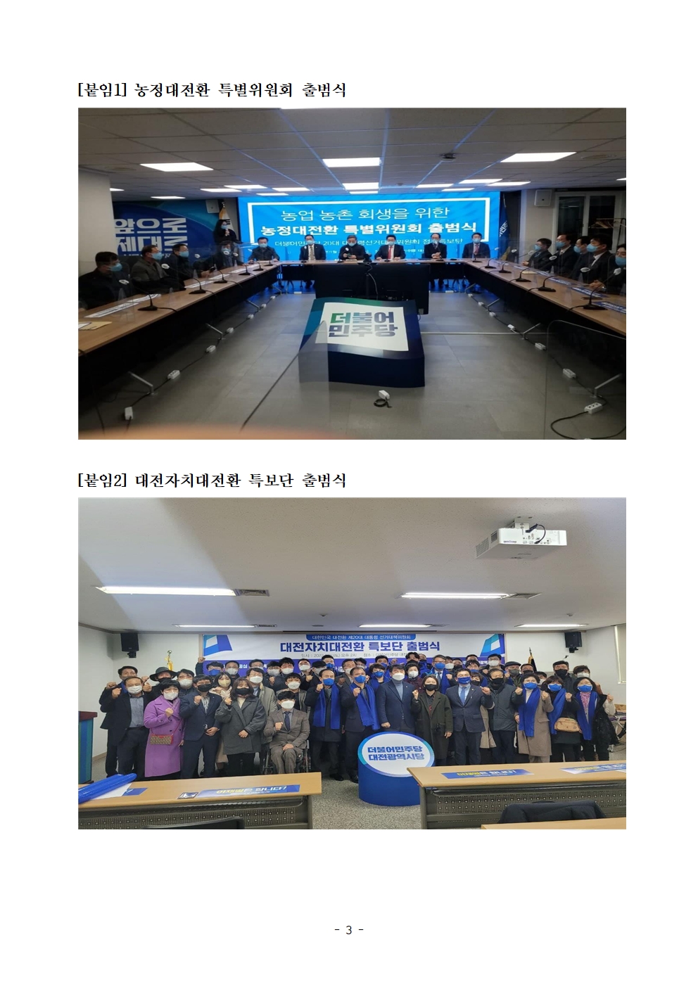 [보도자료] 더불어민주당 선대위 총괄특보단, 정무특보단·대전자치대전환 특보단 출범식 및 청년특보단 간담회 개최