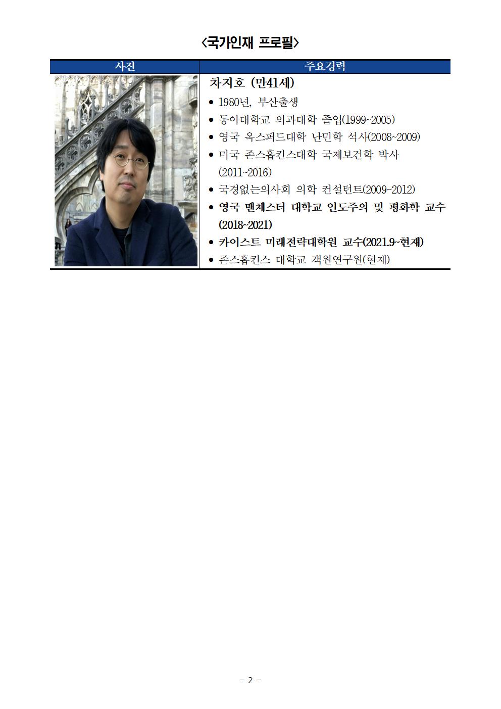 [보도자료] 더불어민주당 국가인재위원회 국제보건 팬데믹 전문가 영입