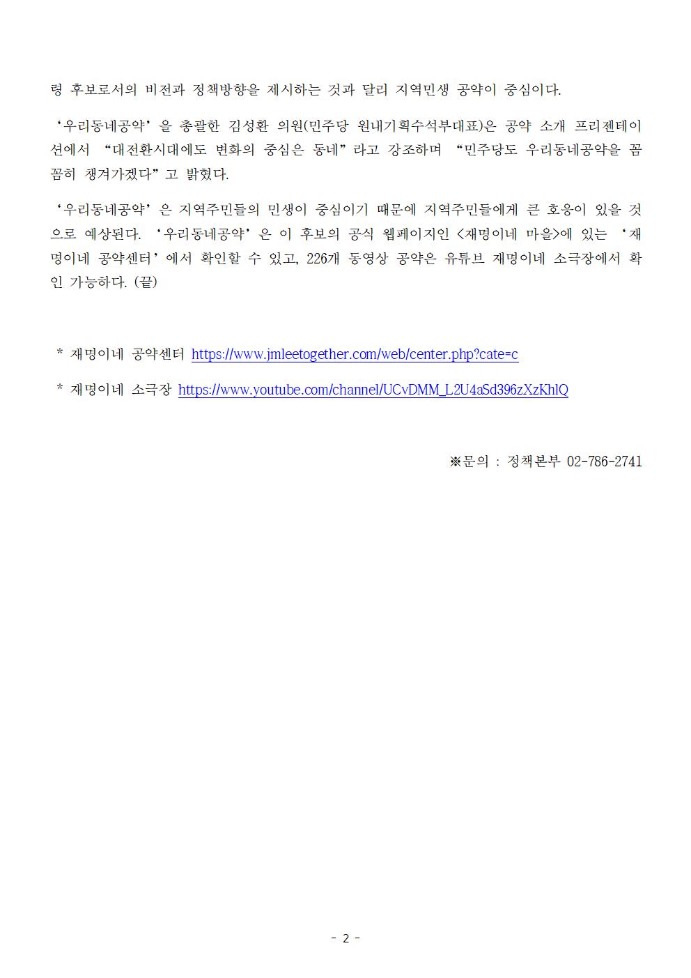 [보도자료] 더불어민주당 선대위 정책본부 우리동네 공약 언박싱데이