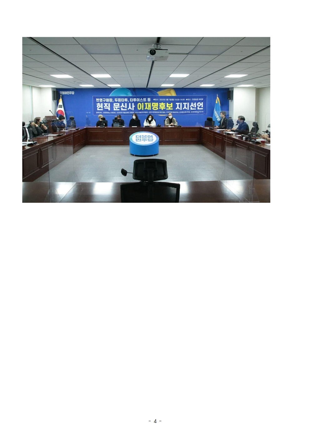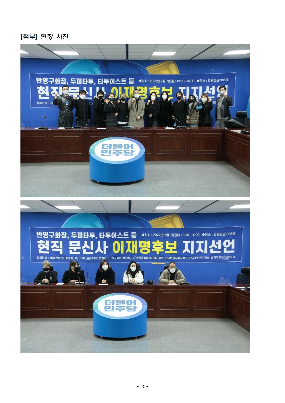[보도자료] 더불어민주당 선대위 직능본부, 현직 문신사들 후보 공개 지지 선언