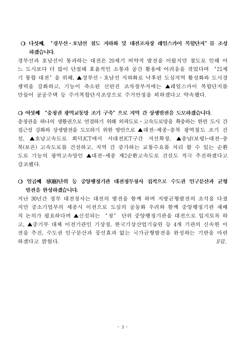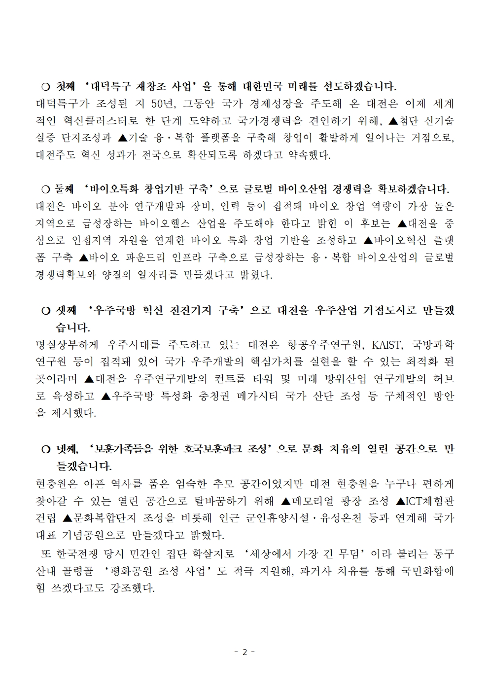 [보도자료] 더불어민주당 선대위 정책본부, 대전 7대 공약 발표