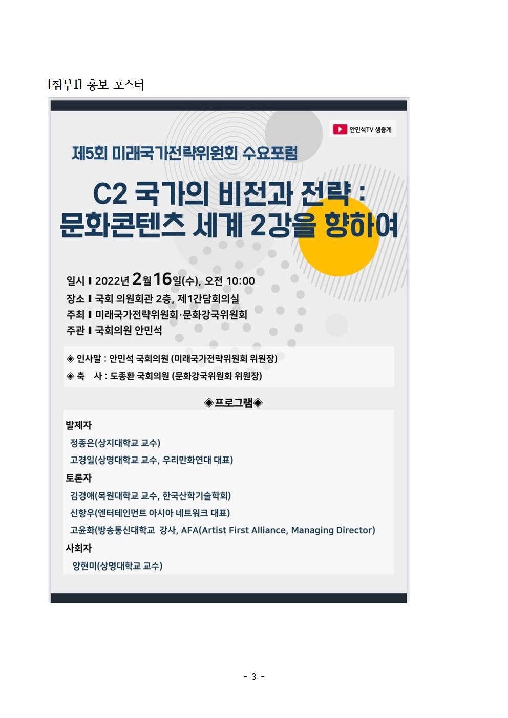 [보도자료] 더불어민주당 선대위 미래국가전략위원회, 제5차 수요포럼 'C2 국가의 비전과 전략' 개최